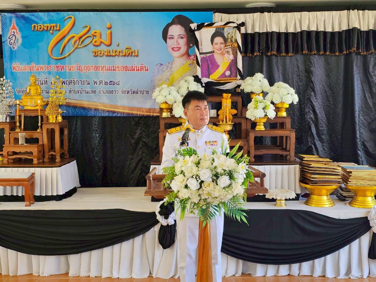 วันที่ 13 พฤศจิกายน 2568 เวลา 09.00 น. ร่วมกิจกรรมพิธีแลกเงินพระราชทานขวัญถุงกองทุนแม่ของแผ่นดิน ประจำปี 2568 โดยมีนายสมจิตร จุลเจริญ นายอำเภองาว เป็นประธานในพิธี โดยมีวัตถุประสงค์เพื่อเป็นการสนองพระราชปณิธานของสมเด็จพระนางสิริกิติ์ พระบรมราชินีนาถ พระบรมราชชนนีพันปีหลวง ที่ทรงห่วงใยต่อปัญหายาเสพติด และเพื่อเป็นทุนตั้งต้นในการป้องกันและแก้ไขปัญหายาเสพติดในหมู่บ้าน/ชุมชนตามแนวสันติวิธีและเพื่อเป็นเกียรติและเป็นขวัญกำลังใจแก่คณะกรรมการหมู่บ้านกองทุนแม่ของแผ่นดิน ณ ศาลาการเปรียญ วัดทุ่งโป่งวนาราม บ้านทุ่งโป่ง ตำบลบ้านแหง อำเภองาว จังหวัดลำปาง